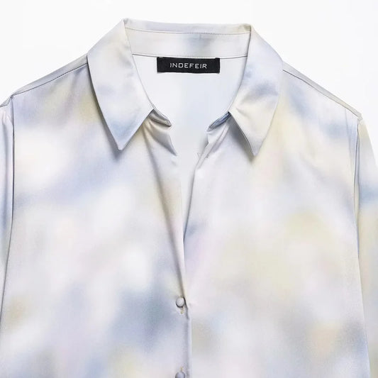 TRAFZA 2024 Women Button up Shirt A-Line Women Streetwear Women Shirt Women Short Sleeve Shirts Blouses Women Print Shirts