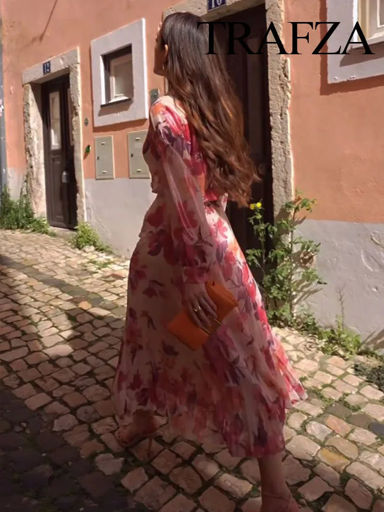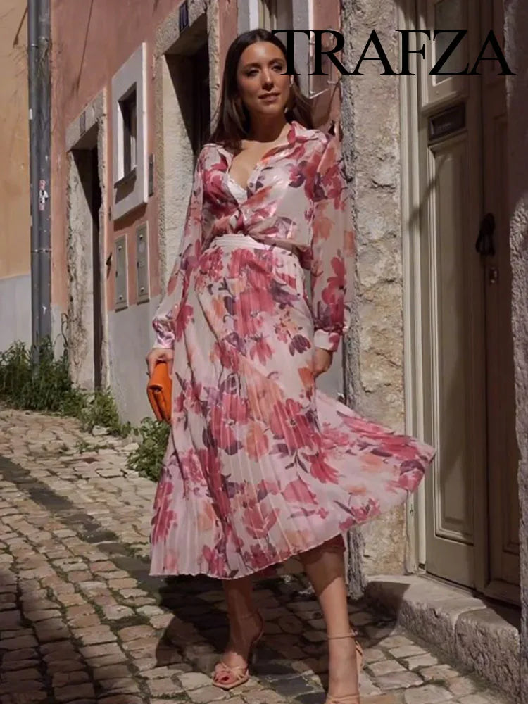 TRAFZA 2024 Women Button up Shirt A-Line Women Streetwear Women Shirt Women Short Sleeve Shirts Blouses Women Print Shirts